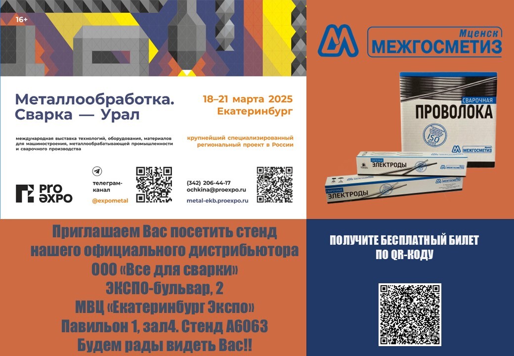Приглашаем Вас посетить стенд нашего официального дистрибьютора ООО "Все для сварки" на выставке Металлообработка. Сварка - Урал.